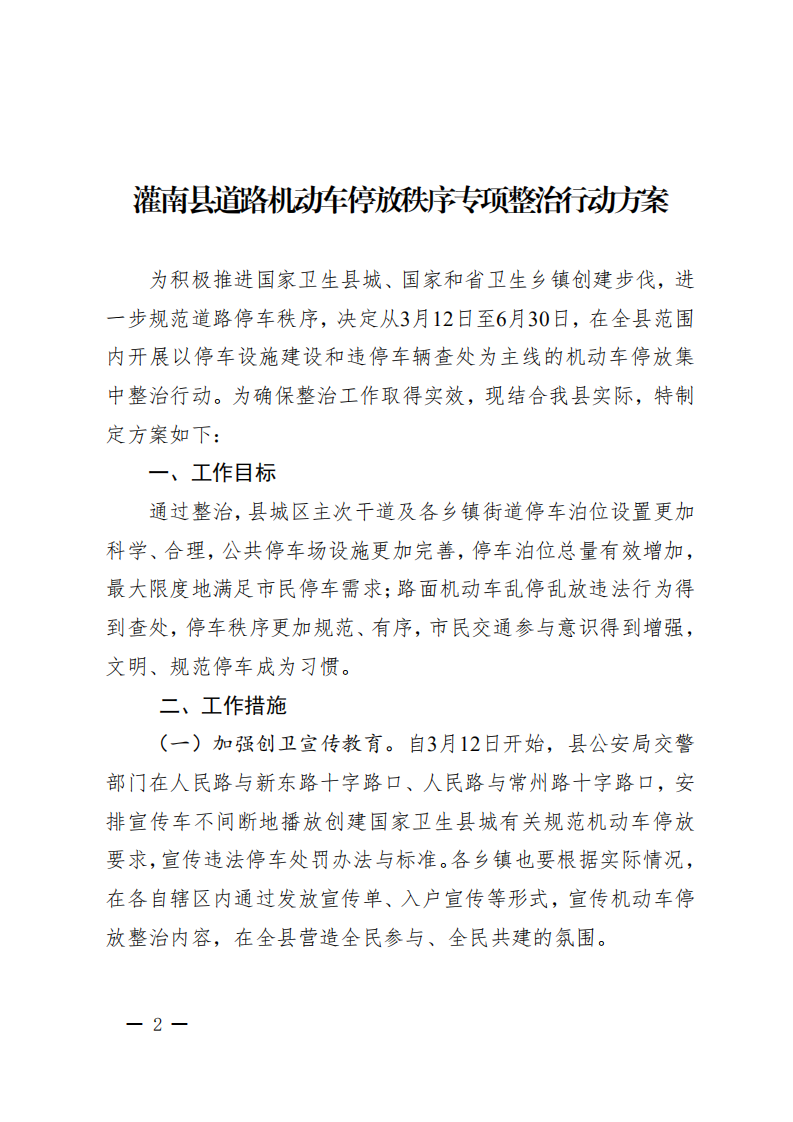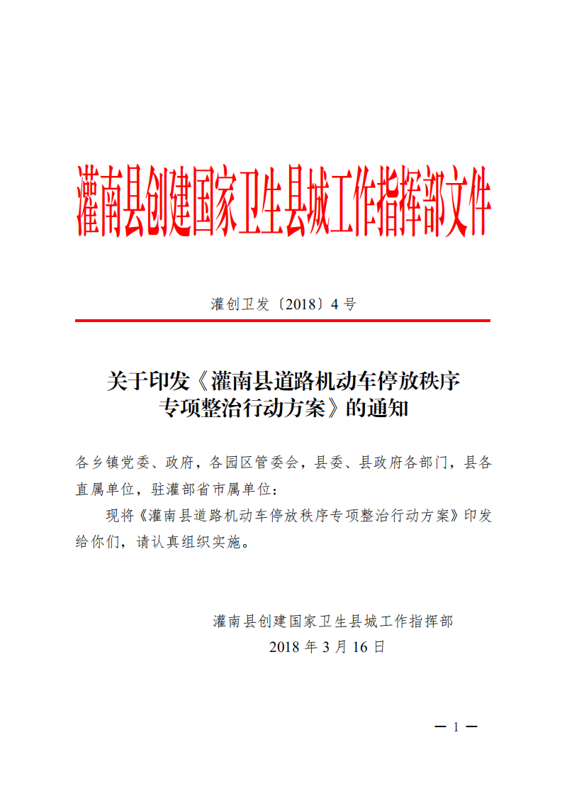 关于印发《灌南县道路机动车停放秩序专项整治行动方案》的通知(灌创卫发4号) (1).pdf