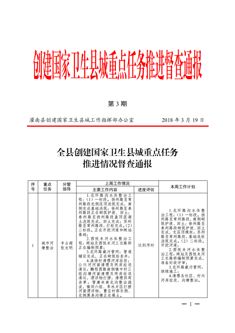 创建国家卫生县城重点任务推进督查通报(第3期)